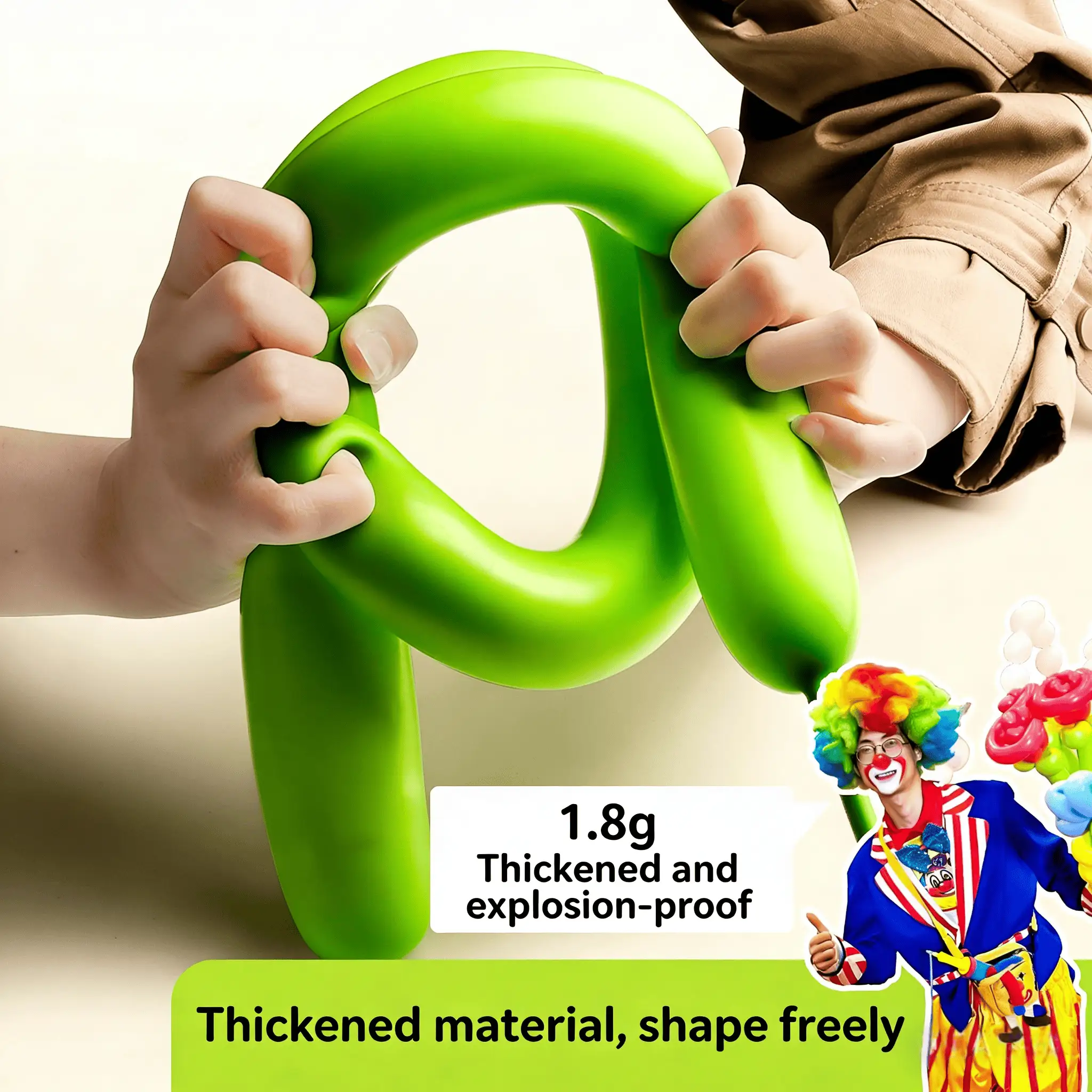Kontrol Kualitas Komprehensif: Saka pilihan bahan mentah (nggunakake lateks ramah lingkungan lan formula rendah protein) nganti kiriman produk rampung, kita ngetrapake proses inspeksi kualitas 12 langkah. Iki njamin dimensi sing tepat (kira-kira. dawa inflated 150cm, diameteripun inflated 4-5cm), kekandelan seragam, lan kemampuan regangan unggul kanggo 260 balon ajaib kita.