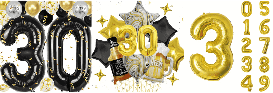 TheNomer Balon Nomerditondoi dening lambung logam lan bisa disesuaikan kanthi macem-macem bentuk. Gabungan gratis, kombinasi nomer 3 lan 0, botol sampanye utawa pola bintang, cocog kanggo acara khusus kayata ulang taun, pesta ulang taun utawa Pernikahan. Kalebu balon emas wungu, holographic utawa pribadi kanthi jeneng lan pesen khusus, bisa cocog karo tema lan skema warna lan dadi hiasan fokus ing pesta kasebut.