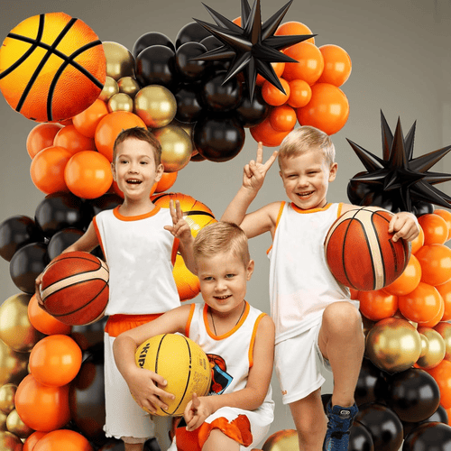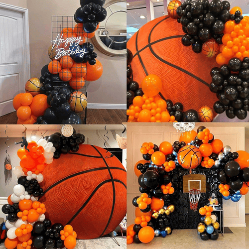 Kit garland balon basket minangka simbol semangat olahraga. Nerangake karo sawetara balon lateks lan sawetara balon foil. Minangka kanggo tema basket, werna saka pesawat iki utamané oranye lan ireng, lan kanggo nggawe lapisan bedabalon lateks emas metalikuga ditambahake. Gaya total iku atraktif banget, bisa langsung nambah swasana pesta sampeyan.