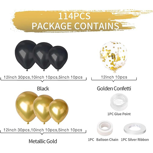 1.Kanggo Kit Balon Arch Ireng lan emas, kita bisa ngatur kanggo sampeyan kanthi cara ing ngisor iki.