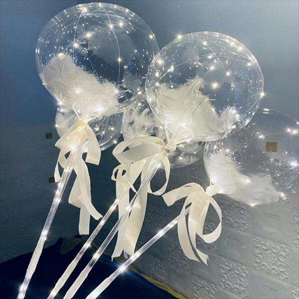 Kanggo kit balon bobo wulu iki, kita uga duwe kutub bobo balon bobo lan kothak entheng. Rod Tanduran Balon dumadi saka rod 35cm, tuwung balon lan tabung plastik cilik. Cahya LED diisi 2 baterei AA, baterei ora kalebu ing ruang lingkup pangiriman. Tali entheng biasane dipérang dadi lampu dipimpin kuning lan lampu LED warna, uga abang, kuning, ungu lan warna liyane, dawane yaiku 1 meter lan spesifikasi liyane. Sing dipimpin duwe 3 setelan blink sing ngidini sampeyan blink kanthi cepet, alon-alon blink, terus-terusan lan ora blink. Sampeyan bisa ngganti setelan cahya balon gelombang kanggo entuk efek multi-klompok sing apik. Yen sampeyan duwe kabutuhan khusus, coba rasa konsultasi, kita bakal ngatur sampeyan kanggo nyukupi syarat-syarat balon bobo sing diisi wulu.