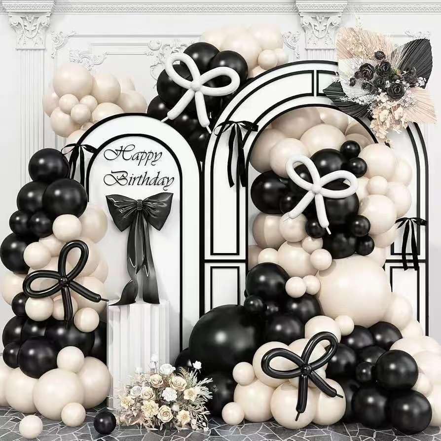 Iki gowone balloon arch garland saiki kasedhiya ing macem-macem warna balon. Garland flack putih lan ireng sing paling anyar yaiku pilihan sing populer ing antarane para pelanggan, amarga warna sing paling populer. Lawang putih putih lan ireng sing dipasang kanthi apik kanthi latar ulang tahun sing seneng. Accenth busur nambah set ulang tahun balon ulang tahun iki, nambah sentuhan cemlorot lan pesona menyang pesta sampeyan.