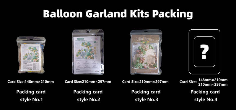 Kanggo kemasan balon arch kit, gumantung saka acara adol sampeyan. Yen sampeyan ngedol online ing ngisor iki packing gaya No.1 lan vakum bakal apik kanggo sampeyan, iku bisa mbantu ngirit papan kapal lan biaya kapal. Nanging yen sampeyan ngedol kit lengkungan balon warna-warni sing disesuaikan ing toko, tas kemasan sing luwih gedhe ing ngisor gaya pengepakan No. Nanging yen sampeyan pengin adat gaya packing cara dhewe, iku uga ok, sampeyan bisa ngomong kita syarat, kita Desainer bakal nindakake iku kanggo sampeyan. Utawa sampeyan nggawe desain lan ngirim kita desain final, buruh kita bakal nindakake kualitas dhuwur warni balon arch kits paesan basis ing syarat.