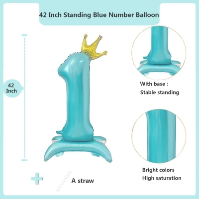 Ingbalon nomer ngadeg foildekorasi duwe dhasar inflatable khusus. Padha ngadeg mantep. Ora ana dhukungan tambahan sing dibutuhake. Penempatan fleksibel lan gratis. Padha teka ing akeh werna. Werna kalebu biru, jambon lan perak. Gaya nomer lengkap. Padha nutupi digit saka 0 kanggo 9. Padha cocog tema beda uga. Tema kalebu umur ulang tahun lan perayaan ulang tahun.