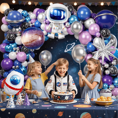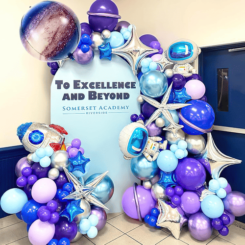 Ya, kanggo ngatur garland balon tema galaksi, tim desainer kita bakal nulungi sampeyan. Lan manajer penjualan sampeyan bakal menehi layanan siji-mandeg.