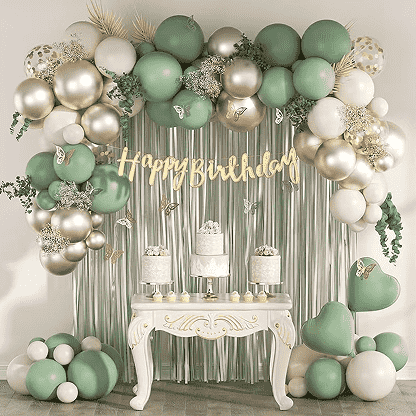 Dekorasi hiasan ulang tahun ulang tahun sing seneng banget nggabungake balon latek, balon foil kanthi latar mburi lan tablecloth kanggo nggawe pemandangan pesta ulang tahun immersive liwat unifikasi warna. Latar mburi lan tablecloth bisa disesuaikan miturut ukuran pemandangan, lan gaya lan pola bisa disesuaikan miturut tema lan sistem warna.