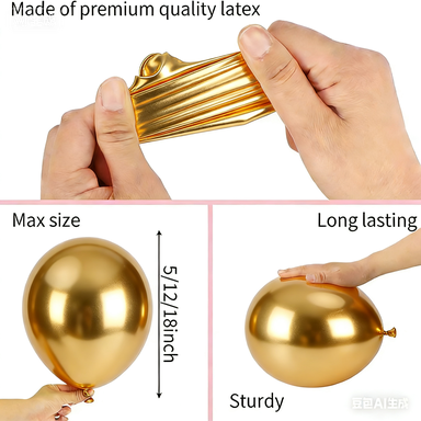 Balon lateks sing diwenehake kanggo bolongan ing siji kit garland balon digawe saka 100% lateks alam sing diimpor saka Asia Tenggara. Ukuran kasebut yaiku 5 inci, 10 inci 12 inci lan 18 inci, kanthi ngatur kanthi ukuran sing beda, efek layering sing menarik bisa digawe.