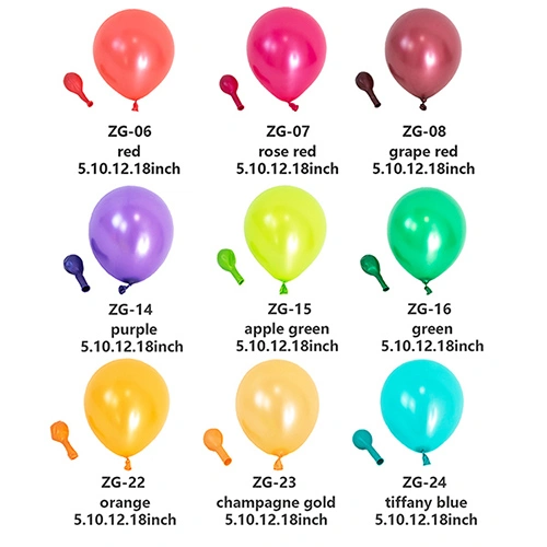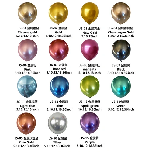 Balon metalik:Kanthi finish pangilon sing nggilap lan tekstur lan warna sing apik banget, iki minangka balon lateks sing paling serbaguna kanggo digunakake ing dekorasi pesta, percetakan khusus, lan liya-liyane.