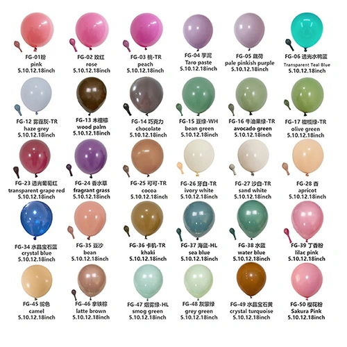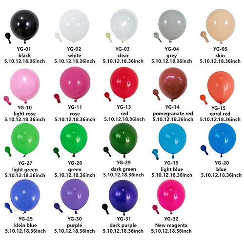 Balon lateks minangka barang hiasan lan hiburan sing akeh digunakake. Balon iki populer banget ing macem-macem kesempatan amarga warna lan cara panggunaan sing beda. Saka matte abang, kuning, biru lan ijo kanggo retro pink lan ungu, lan banjur kanggo nada metalik kaya emas lan mawar, balon kualitas dhuwur bisa nggawe efek visual nggumunke lan nyukupi kabutuhan macem-macem skenario.