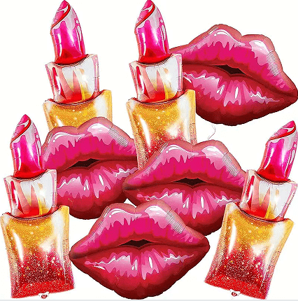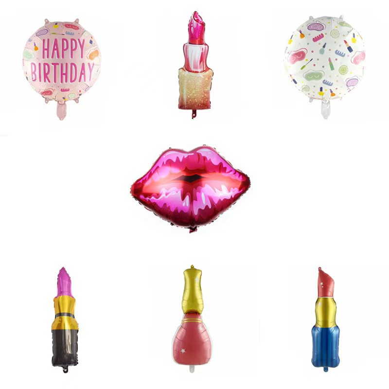 Paket tema kecantikan: lipstik lipstik + kombinasi balon model alat kecantikan, cocok kanggo bukaan toko dandanan, salon kecantikan, kartu pukulan abang online