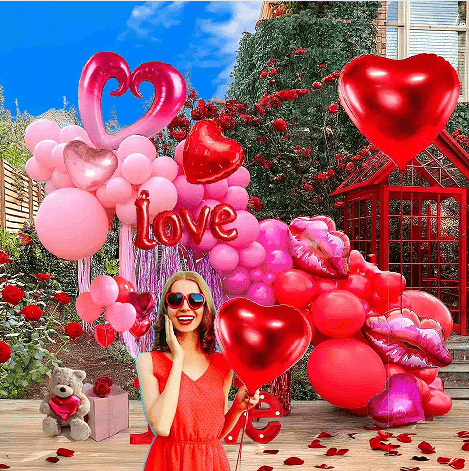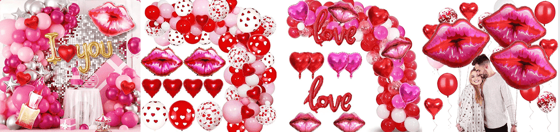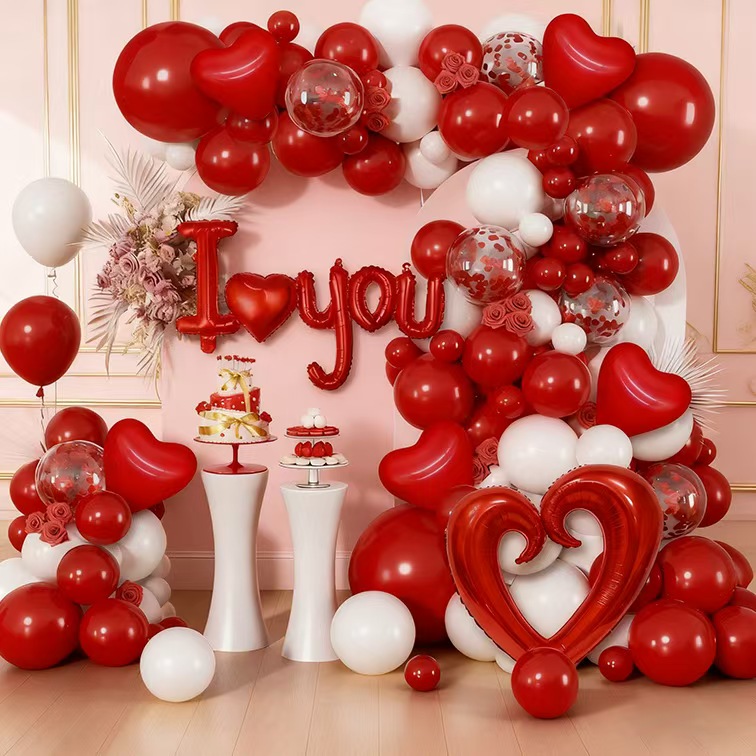 Paket romantis Hari Valentine: balon bibir + balon cinta + balon lateks confetti + titik lem pita, cocok kanggo pernikahan, pernikahan, adegan pengakuan.
