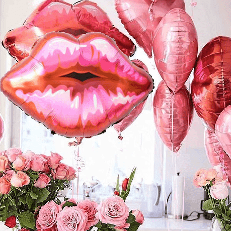 Paket pesta sarjana: balon bibir merah + balon surat + latar belakang rumbai, pesta wanita utama, suasana pesta pra-nikah