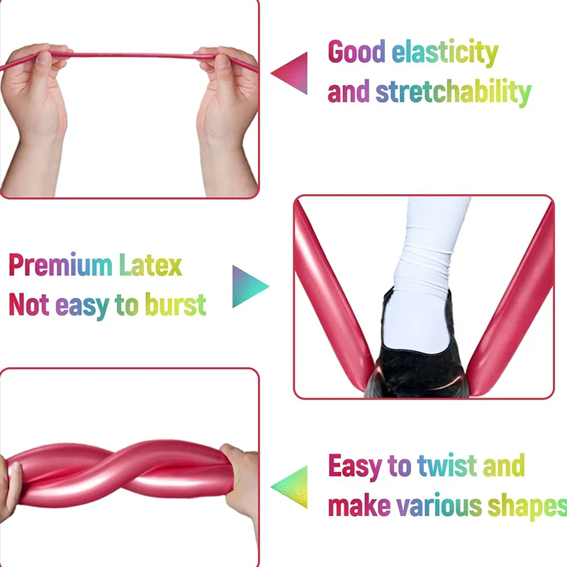 Balon ajaib sing dawabeda karo balon lateks liyane, tingkat keluwesan banget dhuwur, sampeyan bisa nangkep ukuran inflasi miturut kabutuhan, sawise completion inflasi bisa mbengkongaken kanggo nggawe sampeyan pengin wangun.