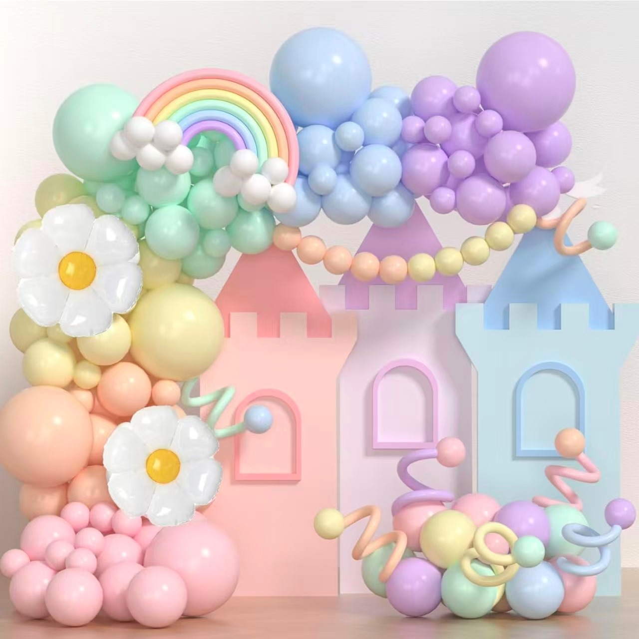 Macaroon berwarna balon garland arch populer kanggo warna alus lan ngimpi. Setane kabeh fokus ing 12 warna Macaroon sing lembut. Nduwe Macaroon Abang, Makaroon Blue, Macaroon Ungu, lan warna liyane. Saben warna nggawa tampilan seger lan romantis.