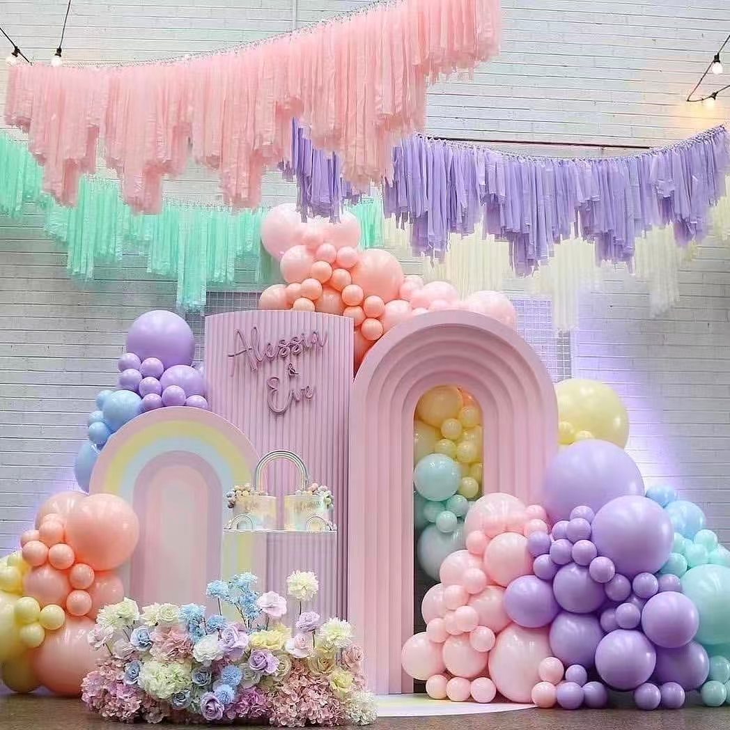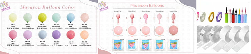 Kanggo pihak pribadi utawa acara gedhe, balon Macaroon Arch garland bisa nambah lapisan lan rasa seni. Dheweke nggawe perayaan sing luwih khusus lan bisa dieling-eling.