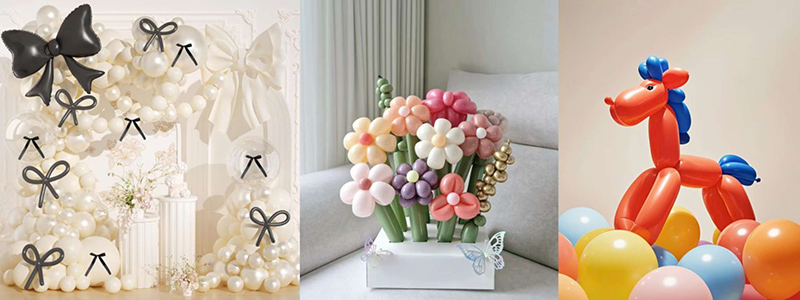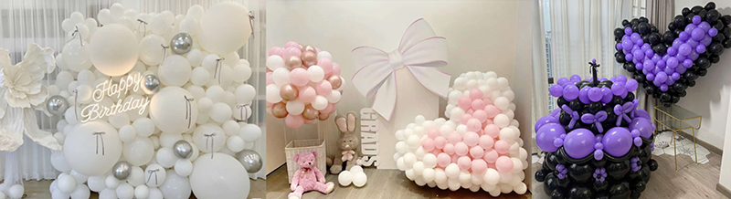 Ukuran sing beda bisa digunakake bebarengan. Balon cilik bisa digunakake minangka rincian dekorasi. Balon gedhe bisa digunakake kanggo lengkungan balon utawa balon balon. Efek katon striking. Yen digunakake nganggo balon bobo, balon warna logam utawa balon foil, tampilan kasebut duwe lapisan luwih akeh. Gaya kasebut dadi sugih. Panganggone akeh banget. Bisa digunakake ing pahargyan. Bisa digunakake ing pesta ulang tahun. Uga bisa digunakake ing acara liburan. Kerjane minangka hiasan utama utawa dekorasi rinci.