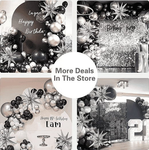 2 .. Werna: Kita nyedhiyakake macem-macem warna logam, macem-macem ukuran balon latek, ndhukung monokrom, nyampur lan cocog utawa match warna ireng, salaka ireng lan silver ireng, uga bisa disesuaikan miturut tema acara kasebut.