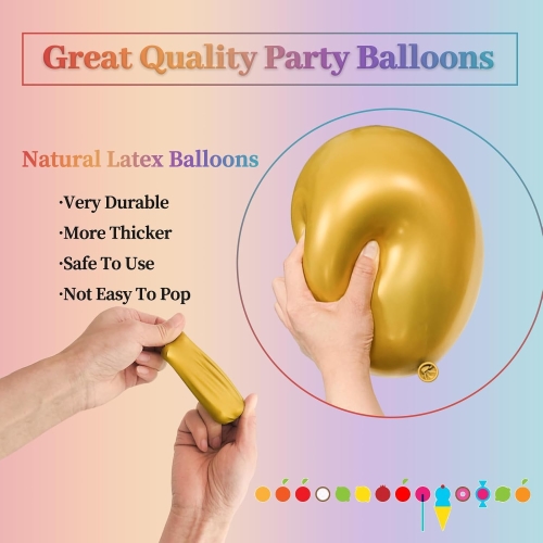 Sampeyan bisa milih siji warna metalik kanggo paket kasebut. Pilihan populer yaiku emas sampanye, ijo metalik, emas mawar lan liya-liyane. Iku ndadekake pemandangan sampeyan aran prasaja lan digabungake. Iku mulet tenan uga. Iku meh ora tau njedhul. Iku tetep kebak luwih saka 12 jam sawise inflasi. Sampeyan uga bisa nyampur warna metalik sing beda. Coba emas lan salaka bebarengan. Iki nggawe dekorasi berlapis, sing narik kawigaten. Gabungke balon iki karo balon lateks confetti uga. Cemlorot alus saka balon metalik kontras karo tekstur confetti sing gemerlap. Confetti gerakane watara nang nalika goyangake mau. Iki nambah kesenengan lan gerakan menyang papan apa wae. Balon warna metalik cilik bisa digunakake kanggo pesta ulang tahun, pernikahan, acara liburan, lan tampilan jendela toko. Saben set ngliwati tes kenceng udara lan safety sing ketat. Iku ketemu standar internasional kaya EN71 lan CE. Inflating wong iku gampang. Malah wong anyar DIY bisa nggunakake. Dheweke uga disenengi para perencana acara profesional. Sampeyan bakal nggawe papan kanthi swasana sing apik tenan.