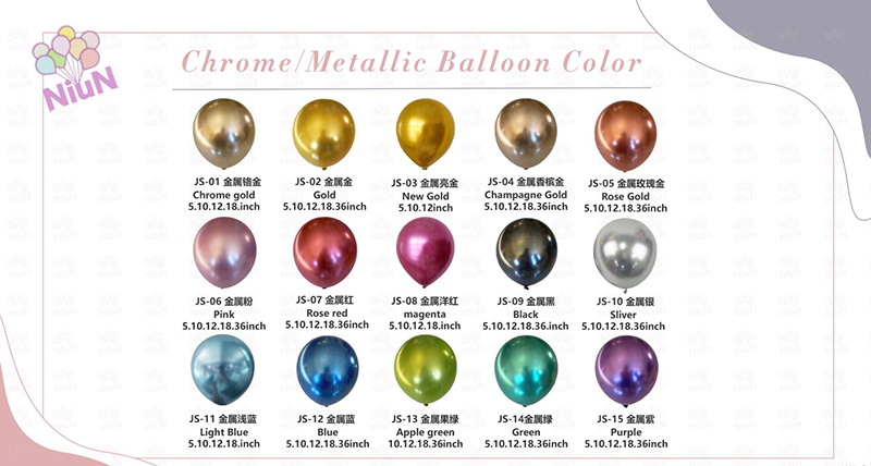 Werna: Balon metalik duwe 15 warna. Sampeyan bisa nyampur kanthi bebas kanggo efek visual tanpa wates.