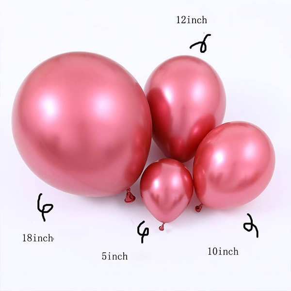 Balon metalik bunder utamane didol ing 15 warna lan macem-macem ukuran sing bisa dipilih. Permukaan pesta lan film metalik dilengkapi mutiara sing alus lan refleksi pangilon, nuduhake luster sing dhuwur. Balon metalik bunder kanthi ukuran sing beda-beda digabungake karo siji liyane, lan uga bisa digawe lengkungan garland balon utawa digunakake karo wit balon. Apa iku kanggo nggawe atmosfer mbukak nengsemake ing ngleboke mall utawa nggawe wacana upacara romantis ing situs wedding, iku bisa dadi fokus visual karo luster metallic unik sawijining.