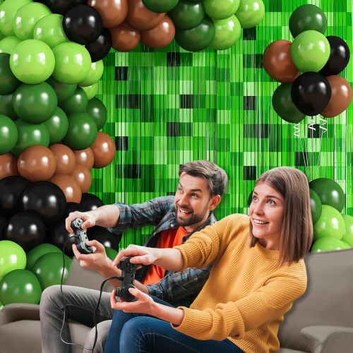 Diilhami dening game video minecraft, kit lengkungan balon minecraft sing awet iki nggabungake macem-macem warna balon piksel ijo kanthi latar mburi pesta bertema minecraft kanggo nggawe tampilan berlapis sing nyenengake sing narik pesona game petualangan klasik.