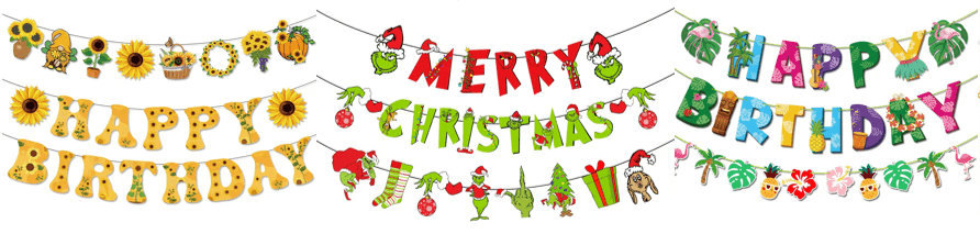 Banner kertas minangka hiasan umum, digawe saka kertas, liwat senar utawa pita bakal dicithak kanthi pirang-pirang pola, teks spanduk ing seri, digunakake kanggo nggawe festival, kegiatan lan acara liyane.