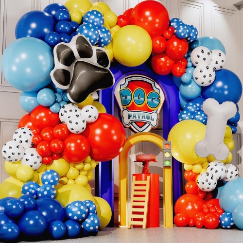 Kit lengkungan balon Paw Patrol kanthi setya nggawe ulang palet warna klasik Paw Patrol.