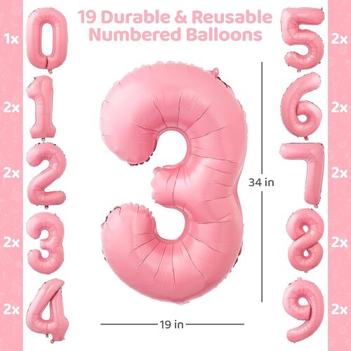 Set balon ulang tahun pink utamane kalebu balon lateks berkualitas tinggi lan balon foil sing beda. Minangka simbol saka tema ulang tahun, balon nomer 34inch minangka komponen sing paling penting. Balon foil huruf kanthi pesen "Happy Birthday" uga menarik banget. Kajaba iku, balon foil gaya liyane kaya balon foil lipstik, balon foil botol lan liya-liyane bisa nambah suasana ing paket iki.