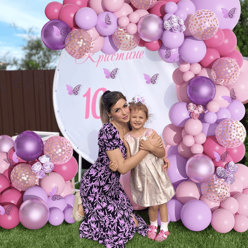 Set garland balon ungu pink sing disesuaikan gampang banget ing NiuN®, ora preduli sampeyan pengin ngatur balon utawa paket.
