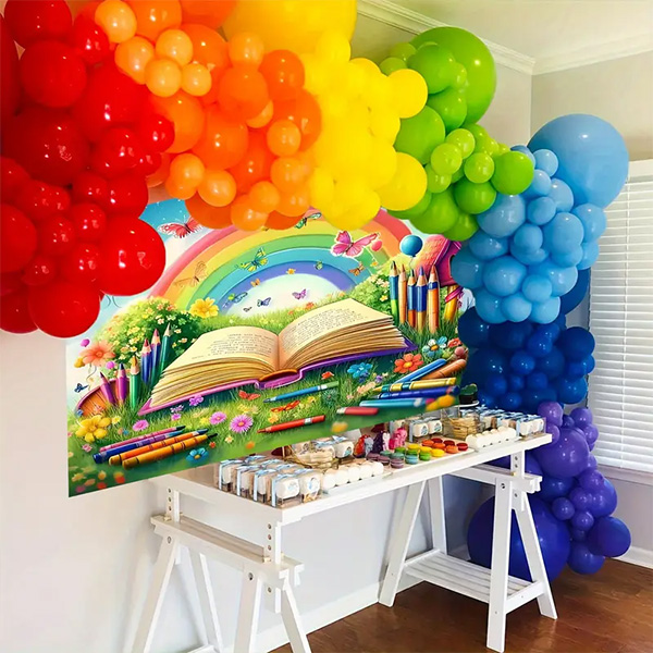 Nun ngganthengDekorasi partai tema penyebaran pelangi nampilake pitung warna balon pelangi, nambah sentuhan warna menyang pesta sampeyan. Gunakake Kit Arch Balloon Pelangi iki kanggo nggawe lengkungan balon pelangi sing sregep, backdrop, centerpiece, lan entriece kanggo pesta tema Pelangi sampeyan.