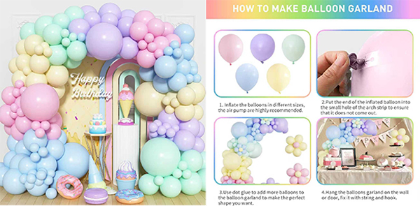 Kit Garland Balon Pelangi dadi cocog kanggo pesta, apa ulang taun, Pancuran Bayi, Pesta Pelangi, utawa Partai Tema Unicorn. Gantung balon pelangi pastel iki saka pirang-pirang pelangi utawa blok warna, utawa gabungke kanggo nggawe garland pelangi sing warni.
