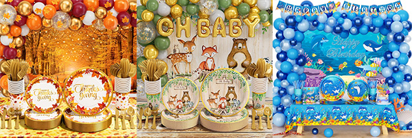 Set Piranti Tabungan Pesta Pesta Pesta Niun® digawe saka bahan sing berkualitas tinggi. Skema warna unik lan macem-macem tema kasedhiya kanggo sampeyan pilih. Sawetara dekorasi ing njero piranti tabarfo bisa digunakake maneh, kanthi cocog kanggo jender, udan remaja, pesta tema, para pengantin, lan prayaan sing dikarepake!