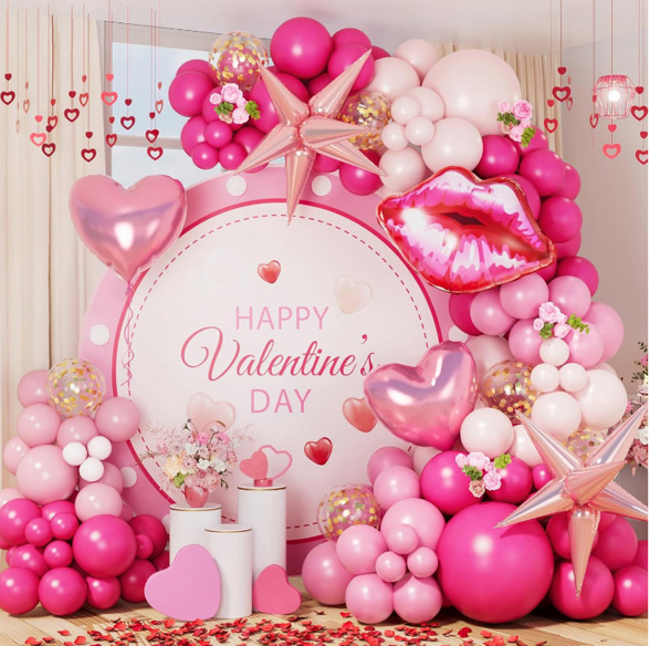Tuwenan pesta Valentine sing paling apik lan milih desain kit langka balon lengkung ing Dina Niun kanggo njamin pengalaman partai Valentine sing paling apik.