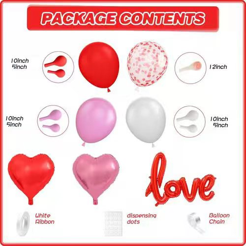 Kit lengkungan balon Valentines Day minangka salah sawijining kit balon bertema festival. Dina Valentine biasane tiba ing 14 Februari saben taun. Kanthi katresnan lan asmara, festival iki misuwur banget ing saindenging jagad. Dadi, kit balon iki paling laris. Ora preduli kanggo perayaan, pesta utawa pesta. Iku bakal dadi pilihan apik.