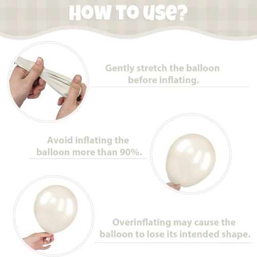 Balon warna mutiara putih bisa digabungake kanggo mbentuk set sing beda, kayata set cilik lan balon garland arch kit.